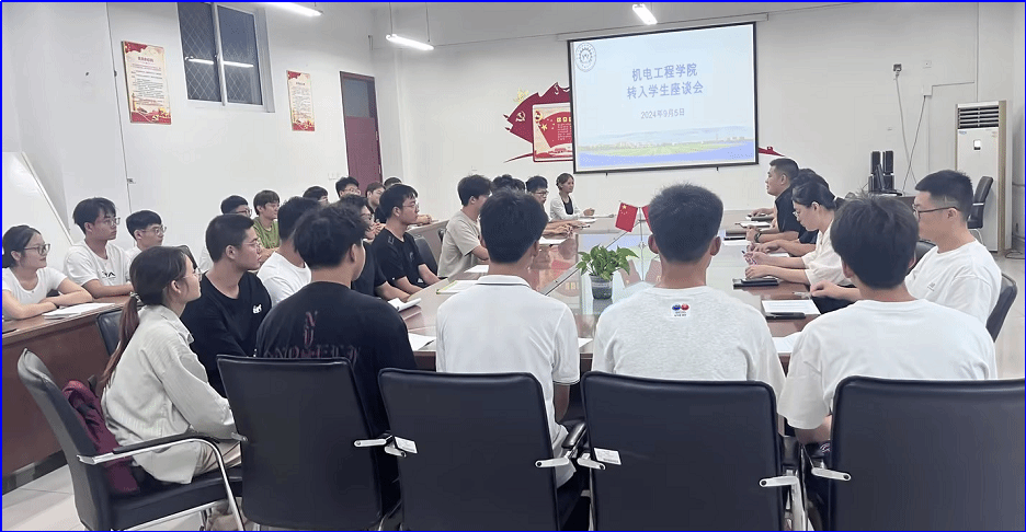 为更好的帮助2023级新转入学生更好地适应新环境,融入新集体,全面了解转专业学生的学习、生活等情况,机电工程学院于2024年9月5日在4212召开座谈会,座谈会由党总支副书记陈敏军主持,教研室主任、辅导员参加座谈会。