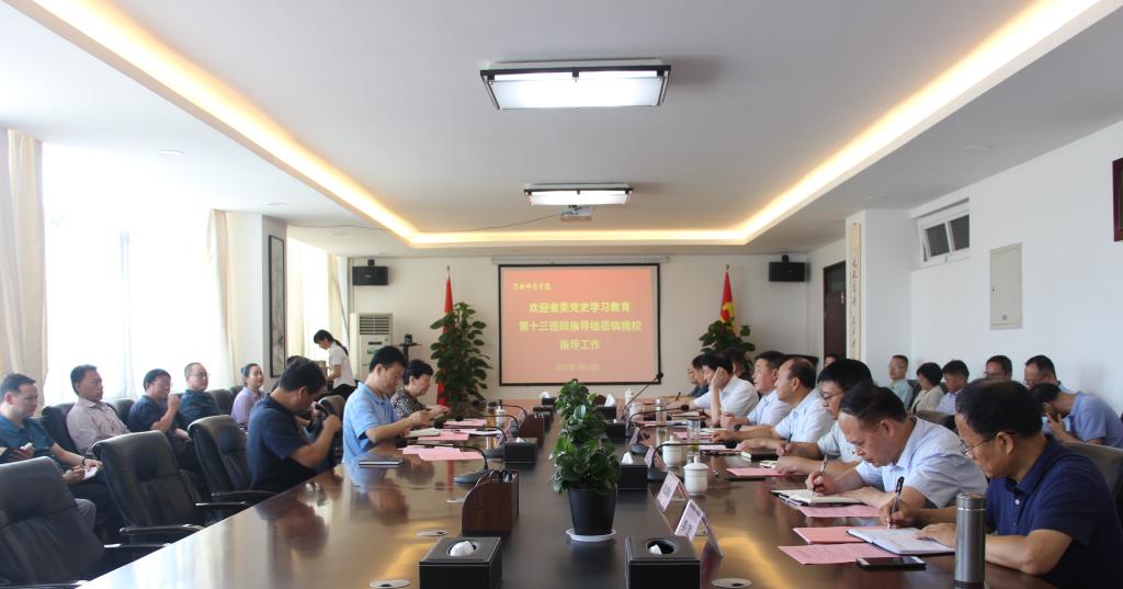 7月13日,省委党史学习教育第十三巡回指导组副组长陈新建,成员黄小丽、曹越一行莅临bat365官网进行第二轮党史学习教育巡回指导。汇报会在学校厚德楼第二会议室召开。学校党委书记卓宇,校长赵曼,党委副书记任健,党委委员、副校长常青林及学校党史学习教育领导小组成员参加了汇报会。汇报会由校长赵曼主持。