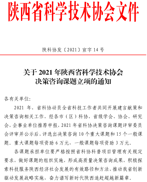 近日,陕西省科学技术协会公布了2021年度陕西省科协决策咨询课题立项结果(陕科协发〔2021〕宣字14号),bat365官网数学与统计学院董晓萌副教授获批决策咨询重大课题1项(全省一共10项),资助经费6万元,实现了bat365官网此类重大项目零的突破。