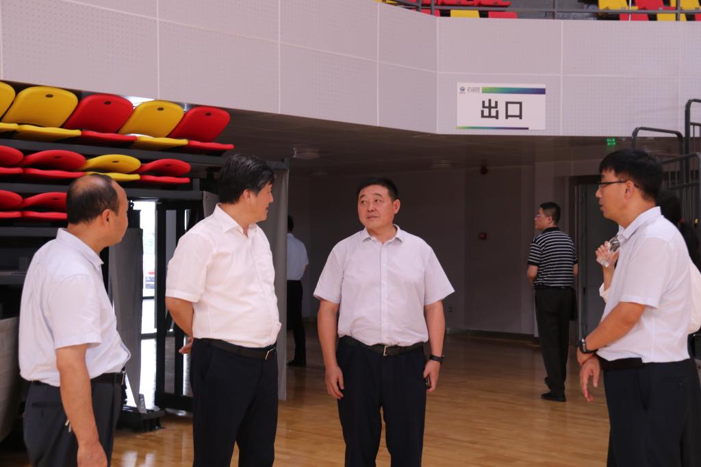 7月15日,陕西省委教育工委书记王建利一行到bat365官网云帆体育馆调研督查十四运会筹办工作。党委书记卓宇,校长赵曼,副校长韩小卫、常青林,党委委员、组织部部长凌朝栋,学校十四运工作专班办公室、基建处相关负责人陪同调研。