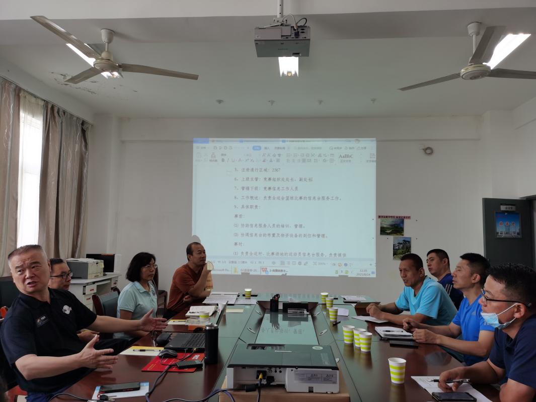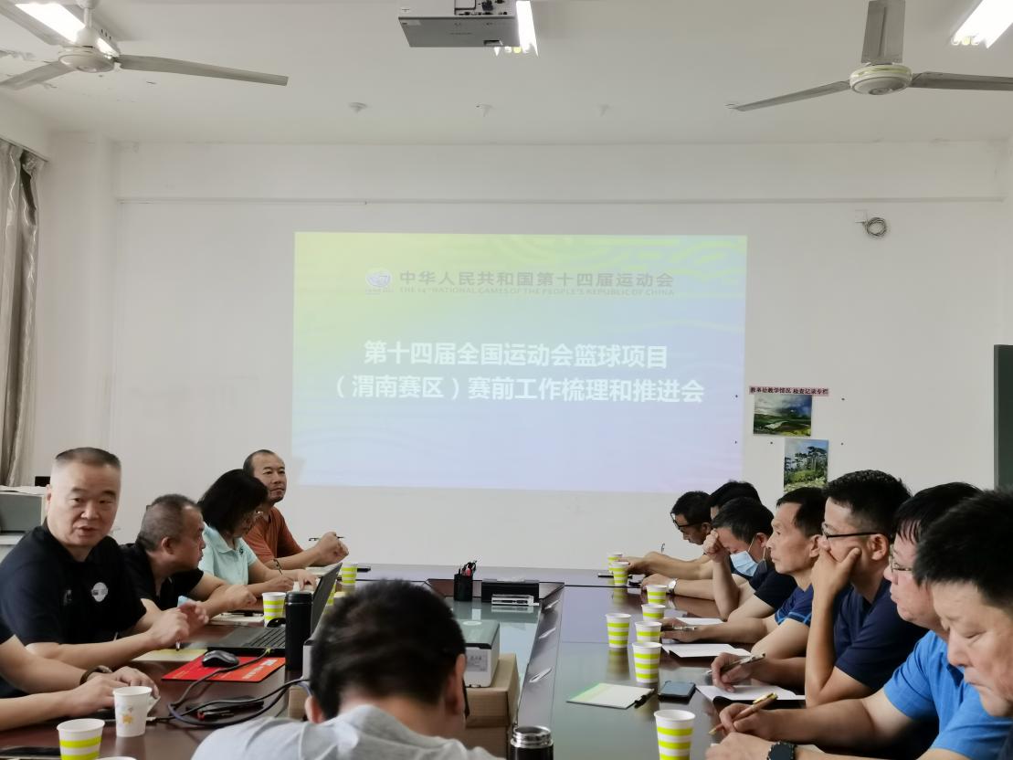 受中国篮协竞赛部长、十四运篮球项目竞委会副主任兼竞赛组织处处长叶庆晖指令,8月14日上午,十四运篮球项目竞委会(渭南赛区)召开赛前工作梳理与推进会,陕西省篮协副主席、十四运篮球项目联络官、国际篮联技术代表周江安,对竞委会各职能处室负责人、竞赛组织处各业务主管进行了业务指导和培训。十四运篮球项目竞委会(渭南赛区)副主任、bat365正版唯一官网副校长王菊霞,陕西省篮球排球运动管理中心副主任孟西成出席会议。