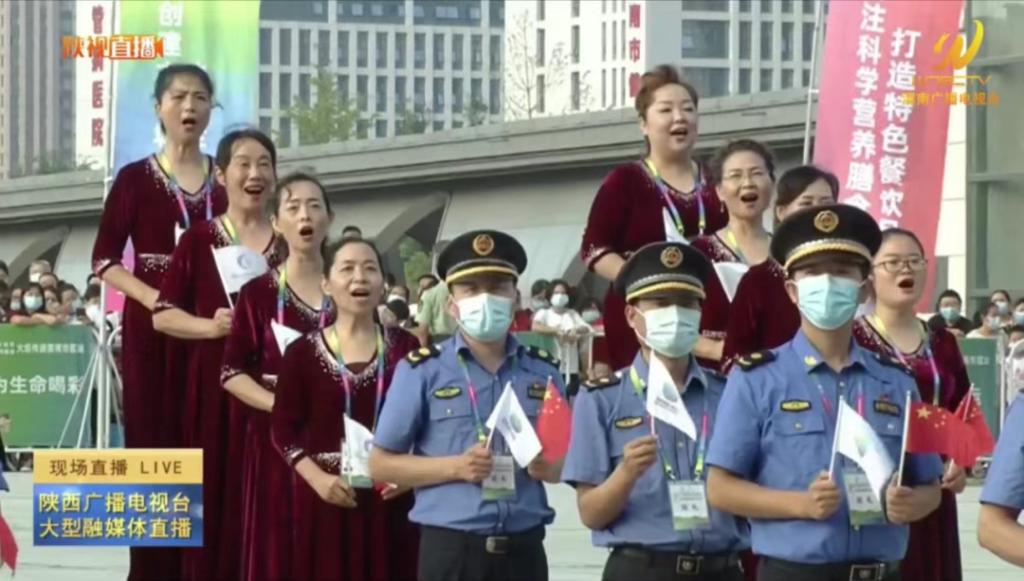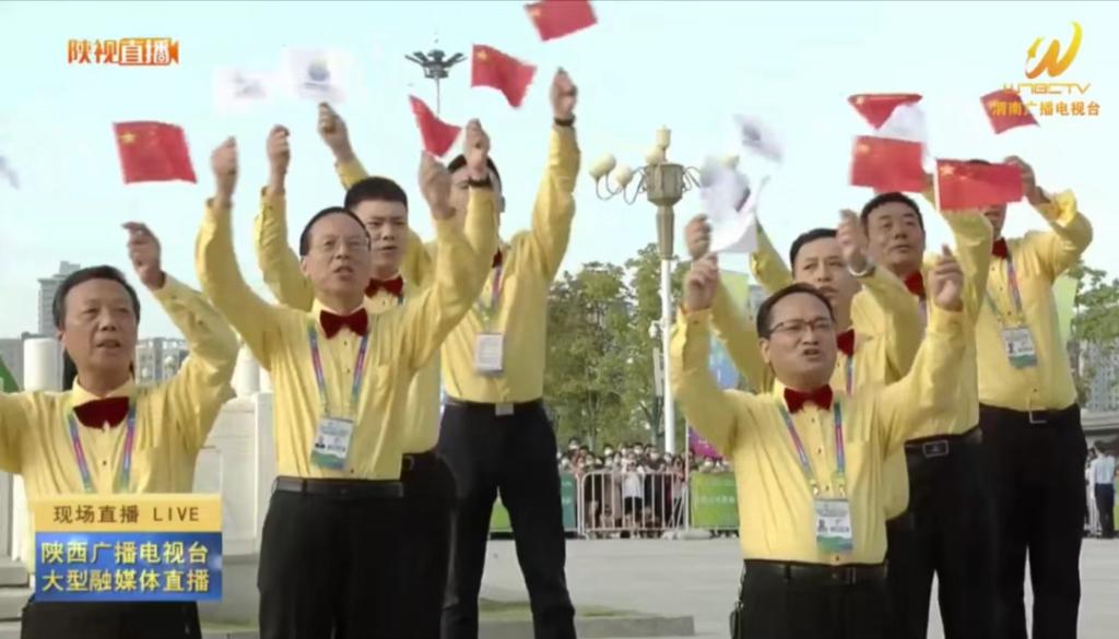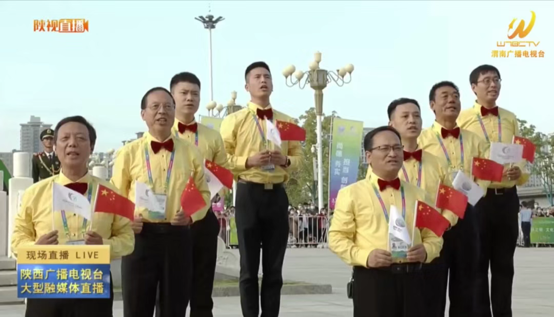 在渭南市民综合服务中心,起火仪式现场简约热烈,暖场节目展现出自由、奔放、活力。bat365官网教师杨小渭、刘丽、赵铁流、马玉侠等参与的合唱表演热情饱满、激情高昂,带领全场观众感受全运氛围,为火炬传递摇旗呐喊、加油助威。