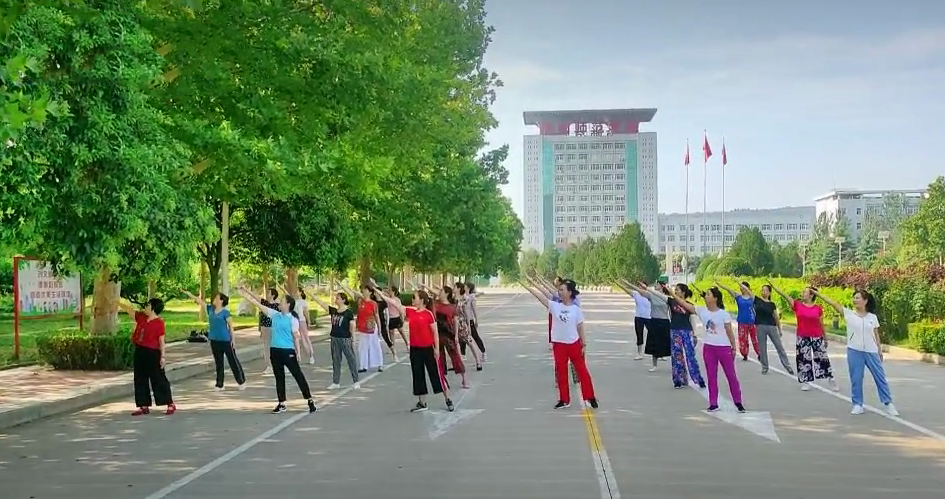 在《没有共产党就没有新中国》的音乐旋律中,师生们脸上洋溢着灿烂的笑容,她们踩着欢快的舞步,用刚劲有力的舞蹈传承红色文化,弘扬红色精神,歌颂中国共产党的丰功伟绩,表达着对党和国家的无限热爱之情。