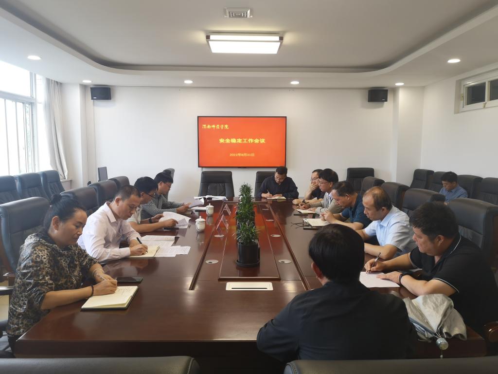 韩小卫分析研判了当前安全稳定工作形势,他指出,近期秋季开学、新生报到叠加,教师节、全国第十四届运动会临近,全校各单位要深刻认识校园安全稳定工作的重要性、必要性和紧迫性,进一步提高政治站位,强化责任担当,增强行动自觉。他强调,做好学校安全稳定工作要树立系统思维,建立长效机制,要切实发挥安全稳定工作机构作用,加强协调配合,形成工作合力。他要求,要落实主体责任,坚持底线思维,做好常态化安全稳定工作;要确保关口前移、做好排查,科学研判、台账管理,完善预案、快速处置,不折不扣落实学校安全稳定工作部署,全力保障学校安全、稳定、和谐、有序。