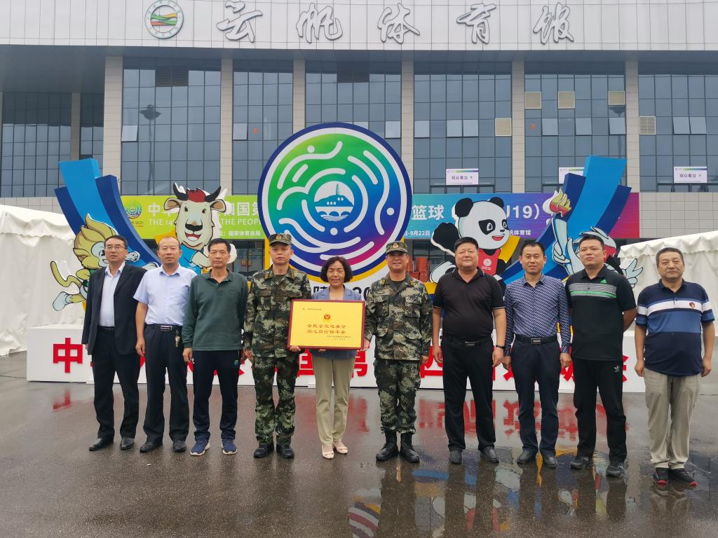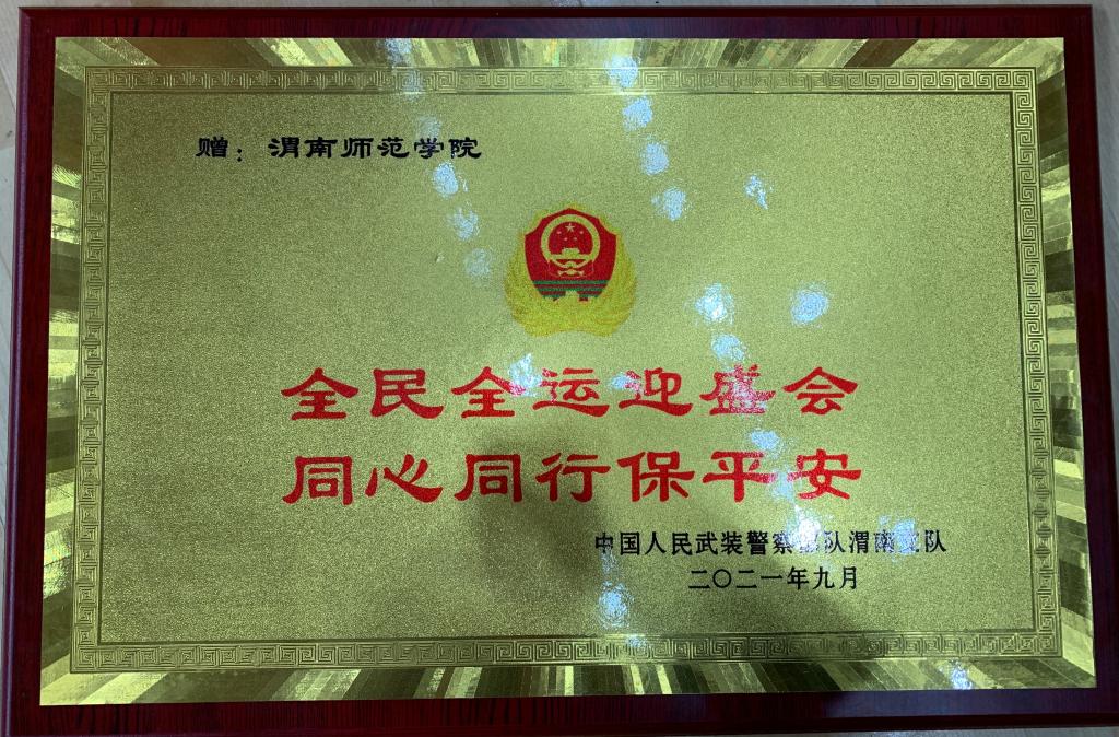 9月23日,中国人民武装警察部队渭南支队赠送bat365官网“全民全运迎盛会,同心同行保平安”牌匾。武警渭南支队副参谋长赵玉龙、勤务保障大队大队长王顺合,十四运篮球项目竞委会(渭南赛区)副主任、副校长王菊霞,学校十四运竞委会相关人员参加赠送仪式。