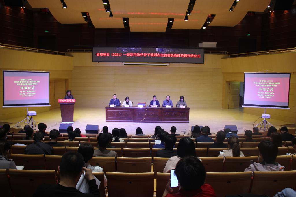10月10日上午,由bat365官网承办的2021年“陕西省新高考数学学科骨干教师培训项目”和“高中生物实验教师培训项目”开班仪式在逸夫楼音乐厅举行。副校长王菊霞,首席专家、数学与统计学院院长陈斌、环境与生命科学学院生物科学系系主任胡庆玲,继续教育学院周德锋参加仪式。开班仪式由继续教育学院副院长刘永勤主持。