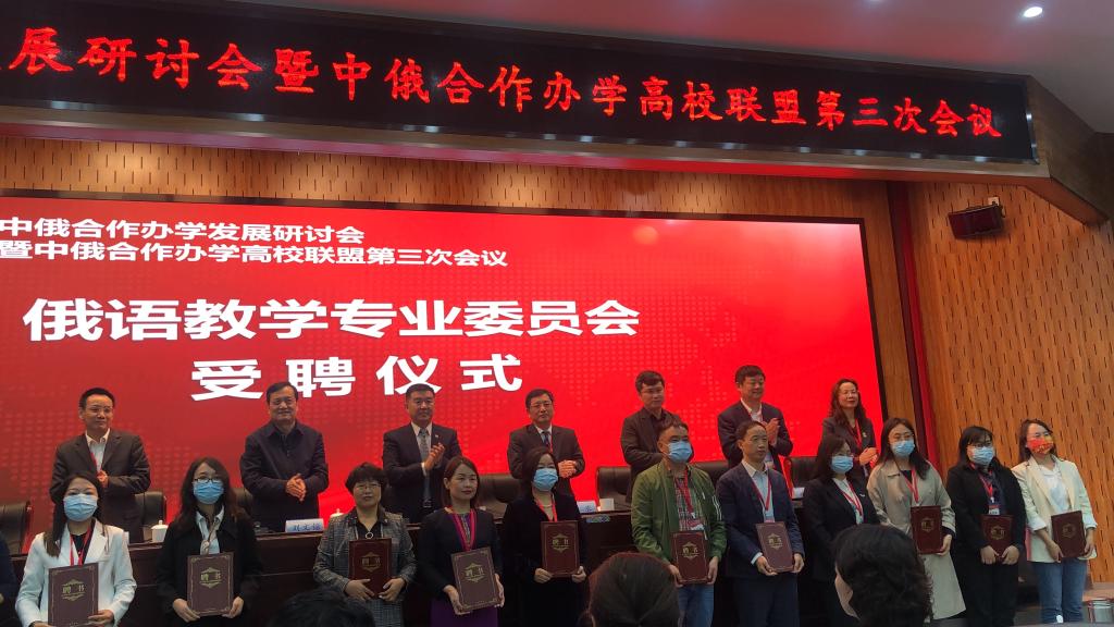 赛前举行了中俄合作办学联盟俄语教学专业委员会授聘仪式,bat365官网莫斯科艺术学院大学俄语教研室主任马榕彬被选聘为中俄合作办学联盟俄语教学专业委员会委员。