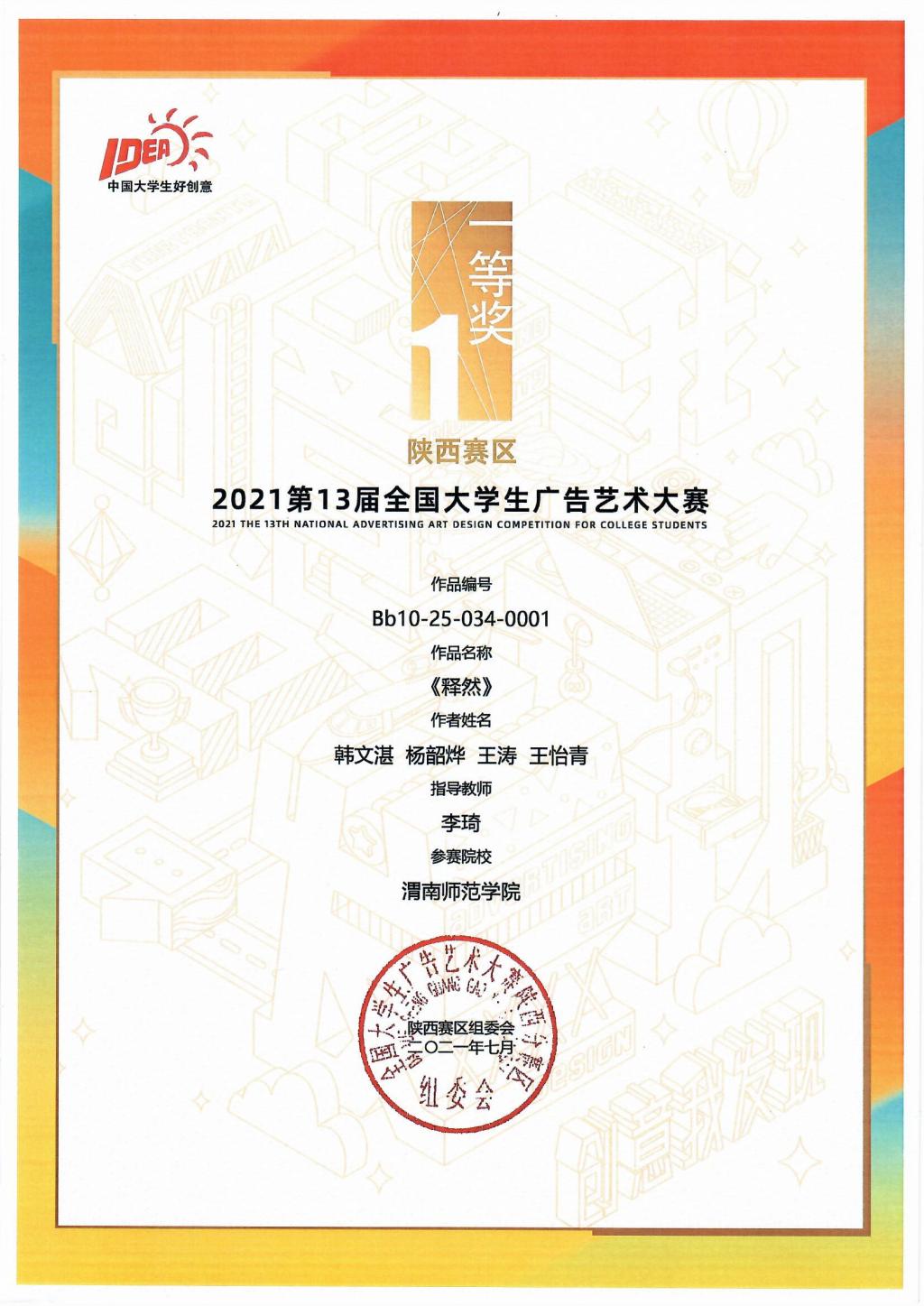 近日,第13届全国大学生广告艺术大赛(简称大广赛)陕西赛区作品评选揭晓,bat365官网传媒学院获得一等奖3项,二等奖1项的佳绩。大学生广告艺术大赛是全国普通高校学科竞赛排行榜赛项。