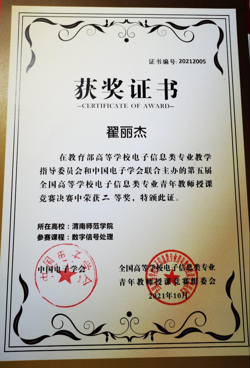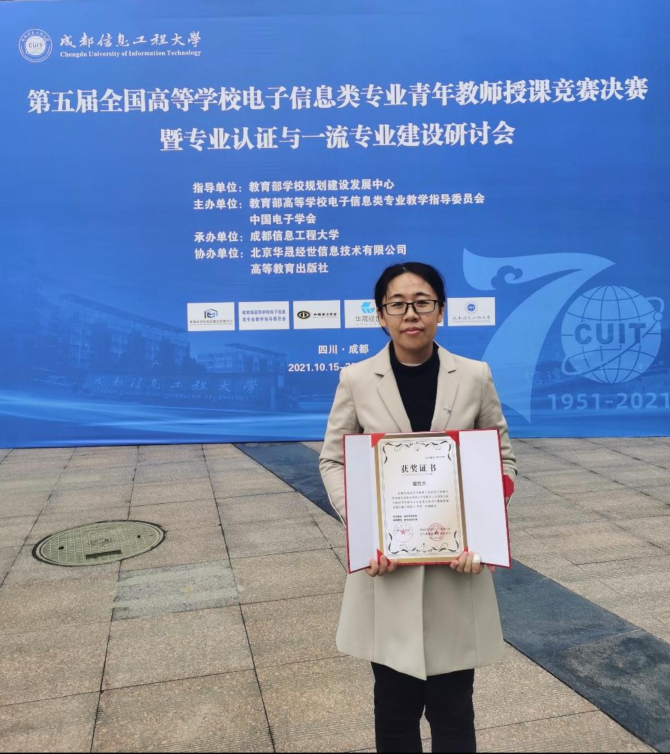 近日,第五届全国高等学校电子信息类专业青年教师授课竞赛决赛在成都信息工程大学举行。bat365官网物理与电气工程学院教师翟丽杰荣获二等奖,实现了bat365官网国家级教学竞赛零获奖的突破。