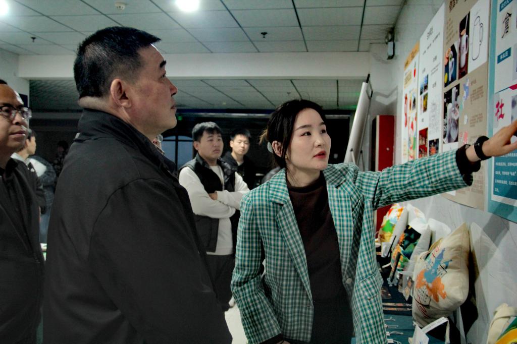 10月25日下午,学校党委书记卓宇莅临富平校区教学楼二楼指导美术学院“文创白水”科研项目成果展。