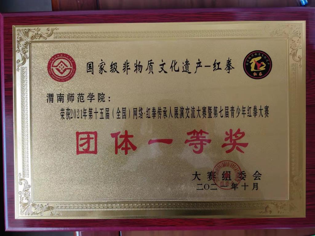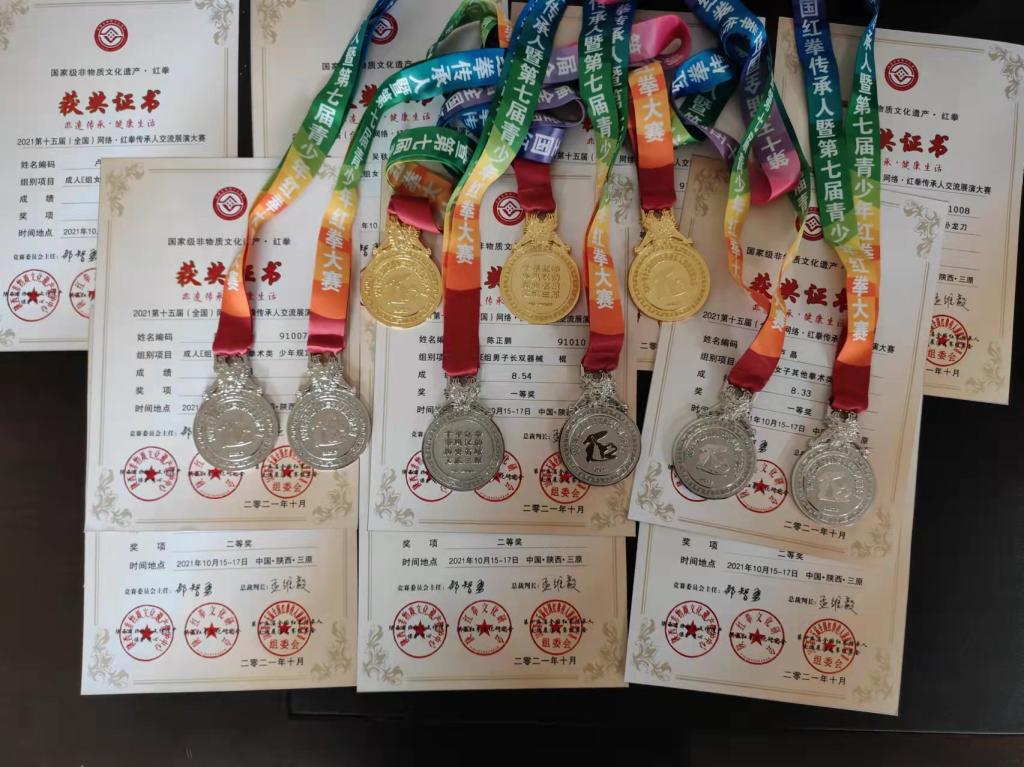 “2021年第十五届(全国)网络•红拳传承人展演大赛暨第七届青少年红拳大赛”经过激烈比拼,于11月15日进行颁奖,bat365官网代表队获团体一等奖以及金牌3枚、银牌7枚的优异成绩。