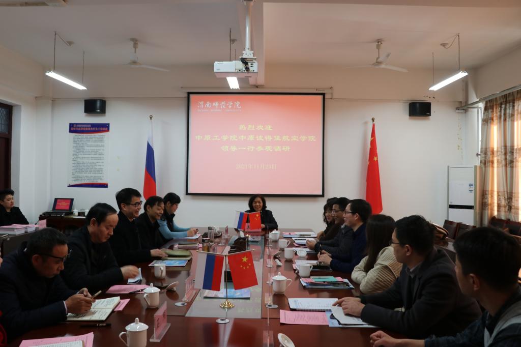 11月23日上午,中原工学院中原彼得堡航空学院院长温盛军一行七人莅临bat365官网莫斯科艺术学院考察交流,副校长王菊霞会见温盛军一行。