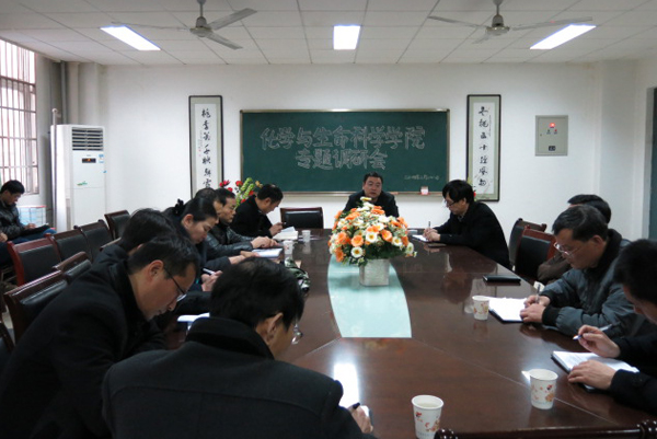 2月28日下午,副校长程书强在国资处王亚辉、图书馆赵怀忠、评估办孙宏恩、科技园赵江永、秦东教师教育协同创新中心陈兰萍、社科处曹强、科技处袁卫等同志陪同下到化学与生命科学学院做调研指导。学院教授、博士、系主任、专业建设负责人及处科级干部参加调研会议。