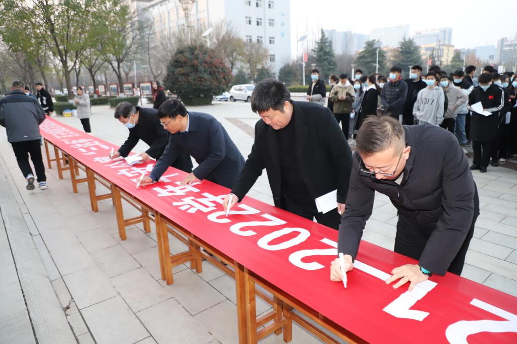 启动仪式后,师生们在活动横幅上签名。