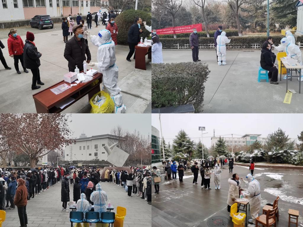 按照学校新冠疫情防控领导小组对医院的工作要求,在保障日常诊疗工作的同时,医院须全面配合完成学校重点人群的核酸采集检测工作。12月17日,根据疫情形势及政府部门要求,附属医院组织配合多家校外医疗机构率先在朝阳校区开展全员核酸检测。自此,拉开学校师生核酸检测的帷幕。截至1月10日,附属医院组织并配合临渭区妇幼保健院、渭南市第二医院、临渭区疾控中心、富平县妇女儿童医院等医疗机构分别在朝阳、富平校区对后勤服务中心、保卫处、资产经营公司及有西安旅居史师生等重点人员统筹安排进行核酸抽样检查累计检测4万余人次,选派医护骨干参加核酸检测业务培训2次,配备核酸采样专用扫码仪器2台,并组织召开了多次核酸采集工作交流会。