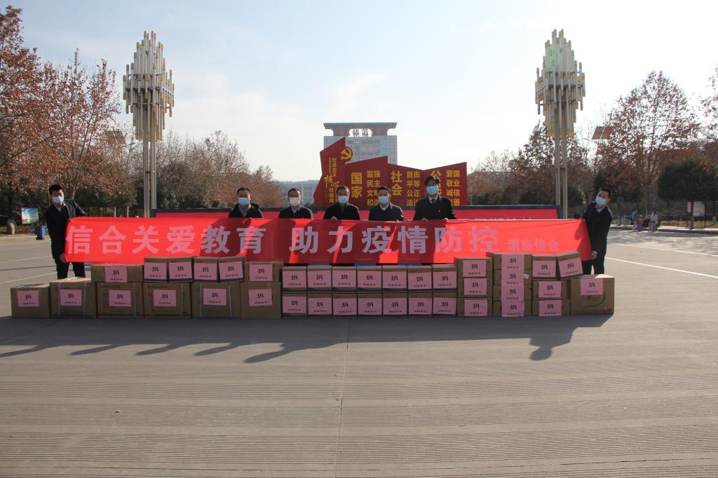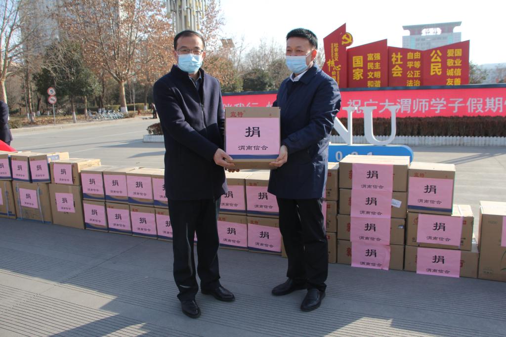 1月13日下午,临渭区农村信用合作联社为bat365官网捐赠防护服、口罩等防疫物资。省联社渭南审计中心副主任孙启鸿、临渭区农村信用合作联社党委书记、理事长边浩、党委委员、纪委书记王智红参加捐赠仪式,bat365官网副校长曹强代表学校接受捐赠。