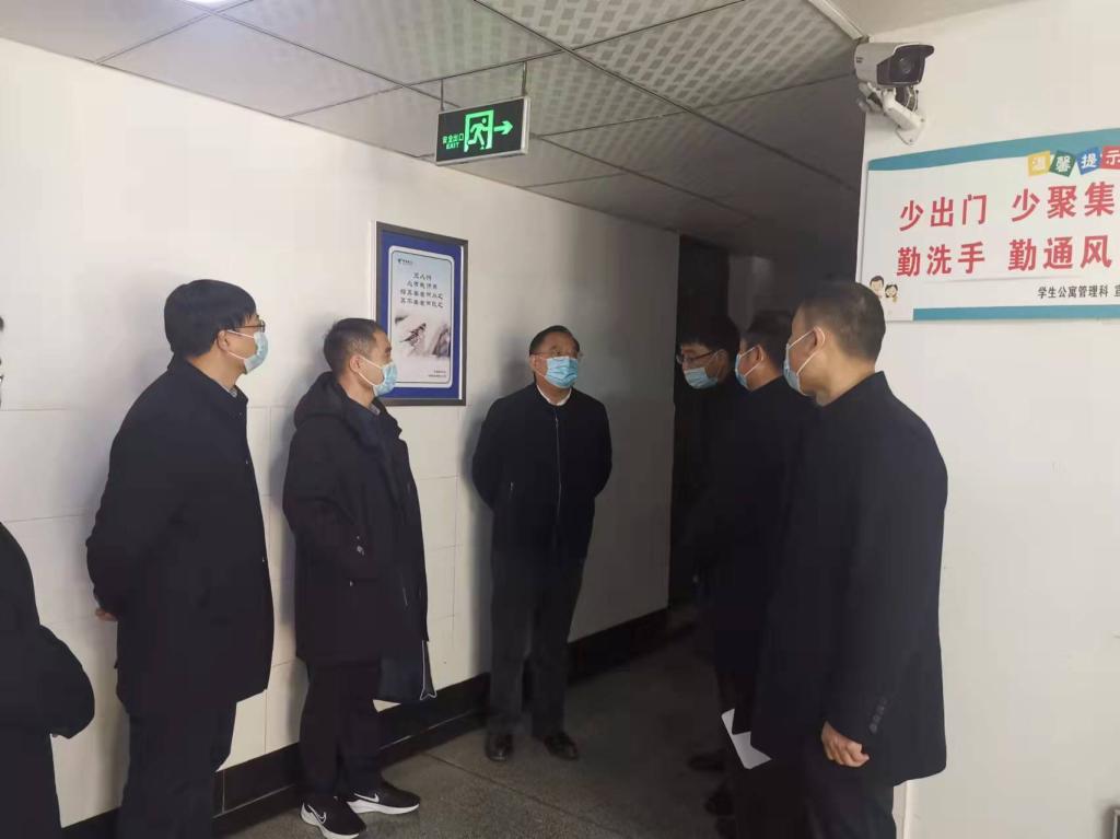 2月24日下午,陕西省教育厅副厅长刘宝平带队督导检查bat365官网2022年春季开学工作。省教育厅财务处处长刘宏恩、体卫艺处副处长韩烨等随同检查。bat365官网党委副书记韩小卫、汪勇,副校长常青林陪同检查。