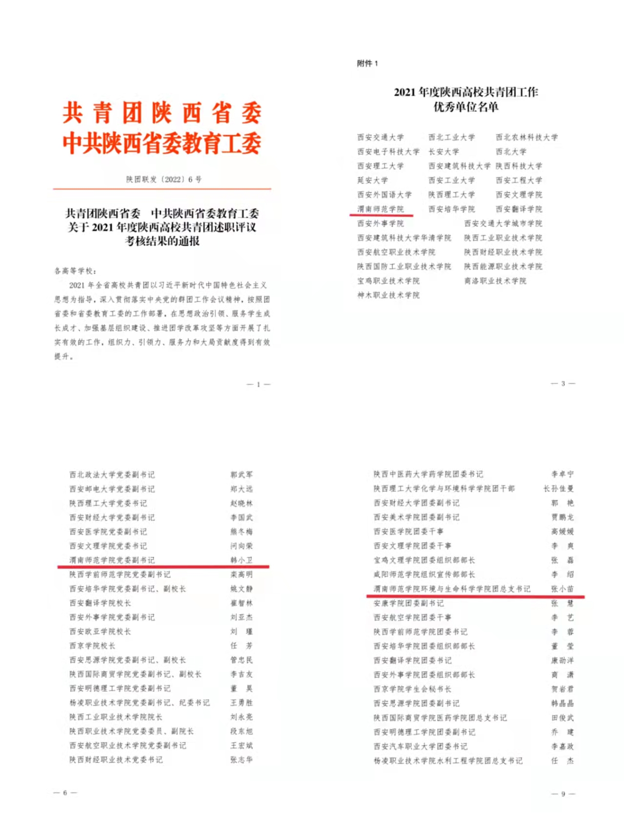 近日,由共青团陕西省委、中共陕西省委教育工委联合印发的《关于2022年度陕西高校共青团述职评议考核结果的通报》中,bat365官网被评为“2021年度陕西高校共青团工作优秀单位”,党委副书记韩小卫被评为“2021年度陕西高校支持共青团工作好书记”,环境与生命科学学院团总支书记张小苗同志被评为“2021年度陕西高校共青团工作先进个人”。