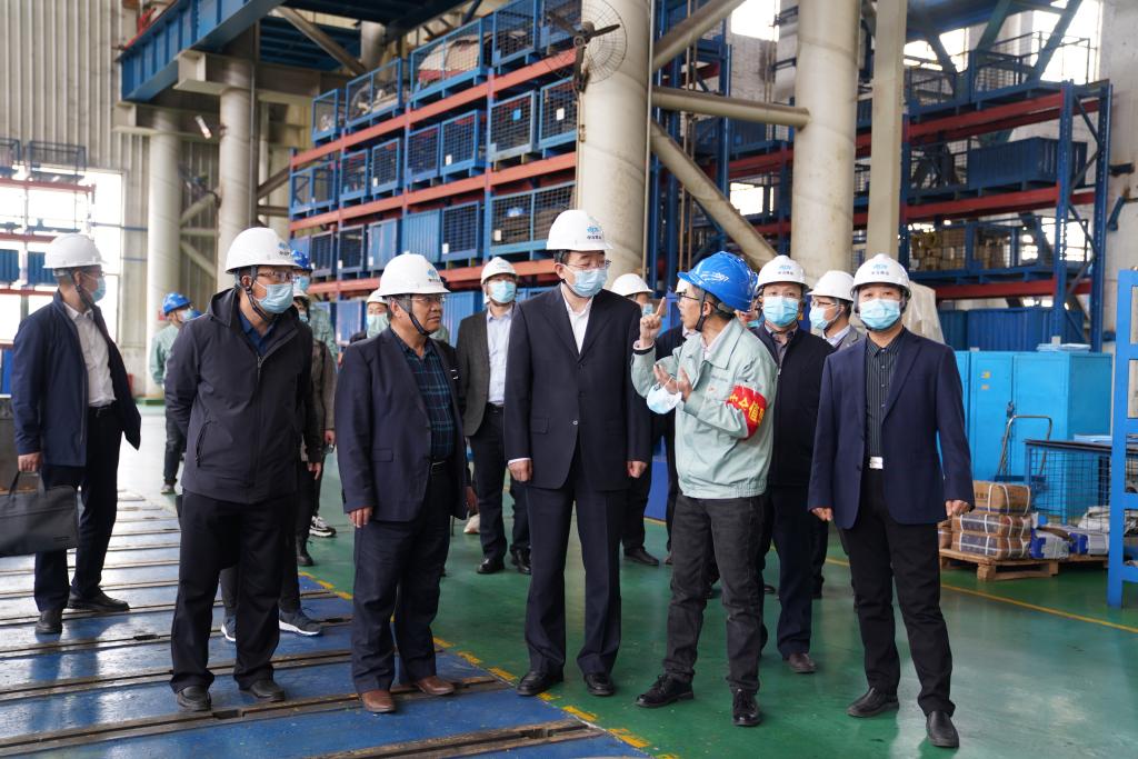 在企业生产车间,张守华一行参观并了解了企业主要产品、生产工艺、现代化流水线和信息化管理模式。