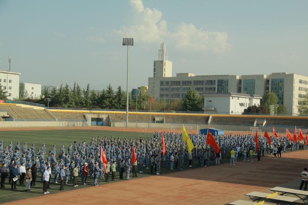 4月10日下午、4月11日上午,学校分别在朝阳校区和富平校区田径运动场,根据疫情防控要求,举行了国防教育教导队成立暨2020级、2021级学生军训动员大会。大会由学校党委副书记汪勇主持。