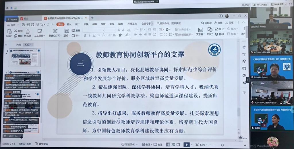 4月29日,教育部普通高校人文社会科学重点研究基地北京师范大学教师教育研究中心发起主办《新时代基础教育强师计划》专题研讨会通过线上线下形式顺利举行。bat365官网作为北京师范大学教师教育研究中心西北分中心设立分会场,组织教育学科相关教师参加了本次研讨会,梁燕玲教授做了主题发言。