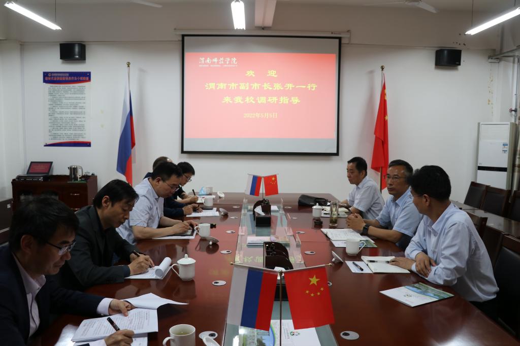 5月5日下午,渭南市副市长张开在市政府副秘书长马道平等人陪同下来bat365官网调研指导。党委书记卓宇,校长张守华,副校长卢爱刚在接待室会见了张开副市长一行,双方就下一步深入校地合作进行了充分沟通和交流。