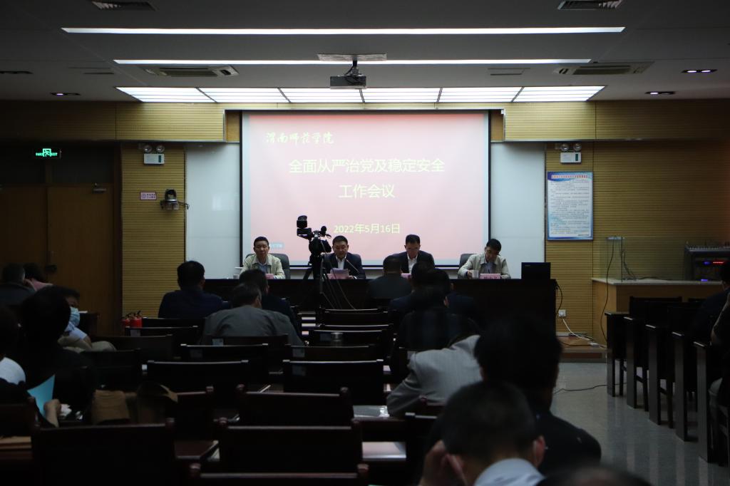 5月16日下午,学校召开2022年全面从严治党及稳定安全工作会议。党委书记卓宇,党委副书记、纪委书记、监察专员肖耀刚,党委副书记韩小卫出席会议。会议由党委副书记、校长张守华主持。