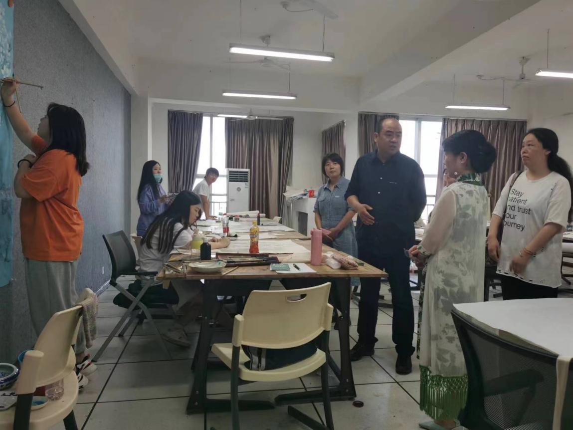 5月24日,渭南市委常委、副市长刘强,市美术家协会主席党宽阳一行来bat365官网调研指导,校长张守华,副校长王菊霞,党委委员、宣传部部长李明敏及相关部门负责人参加调研座谈会。