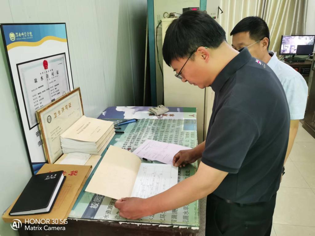 随后,常青林深入学生第一餐厅、第二餐厅,在各楼层随机调阅了各公司的食品原材料进货台账、索证索票资料;对各公司的留样管理和记录台账、燃气安全“一日三检”制度的落实情况等进行了重点检查。