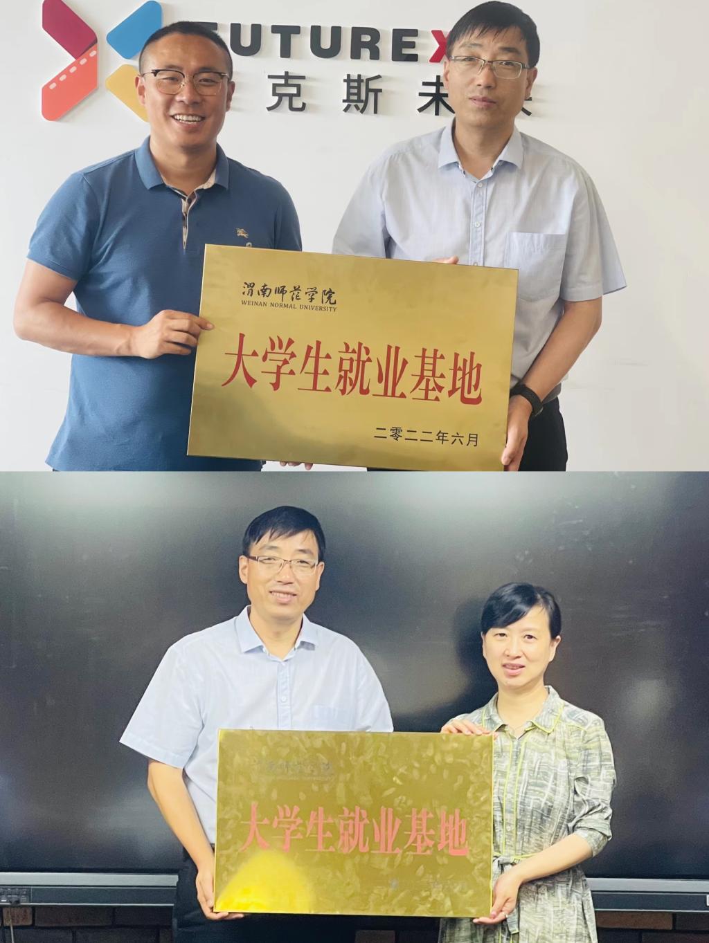 座谈会上,韩小卫代表学校向陕西动漫产业平台管理中心、爱克斯未来有限公司两家企业授bat365正版唯一官网大学生就业基地牌。