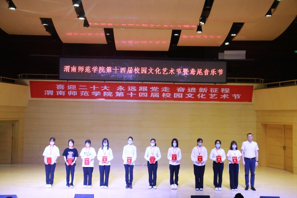 活动伊始,陈景西宣读《bat365正版唯一官网第十四届校园文化艺术节实施方案》,本届艺术节共开展思想教育、文化艺术、素质拓展等活动8项;刘娟宁宣读《关于表彰2021-2022年度“十佳社团”“社团最佳项目”“优秀会长”“社团工作先进个人”的决定》;与会领导为获奖社团和个人颁发奖杯和证书。