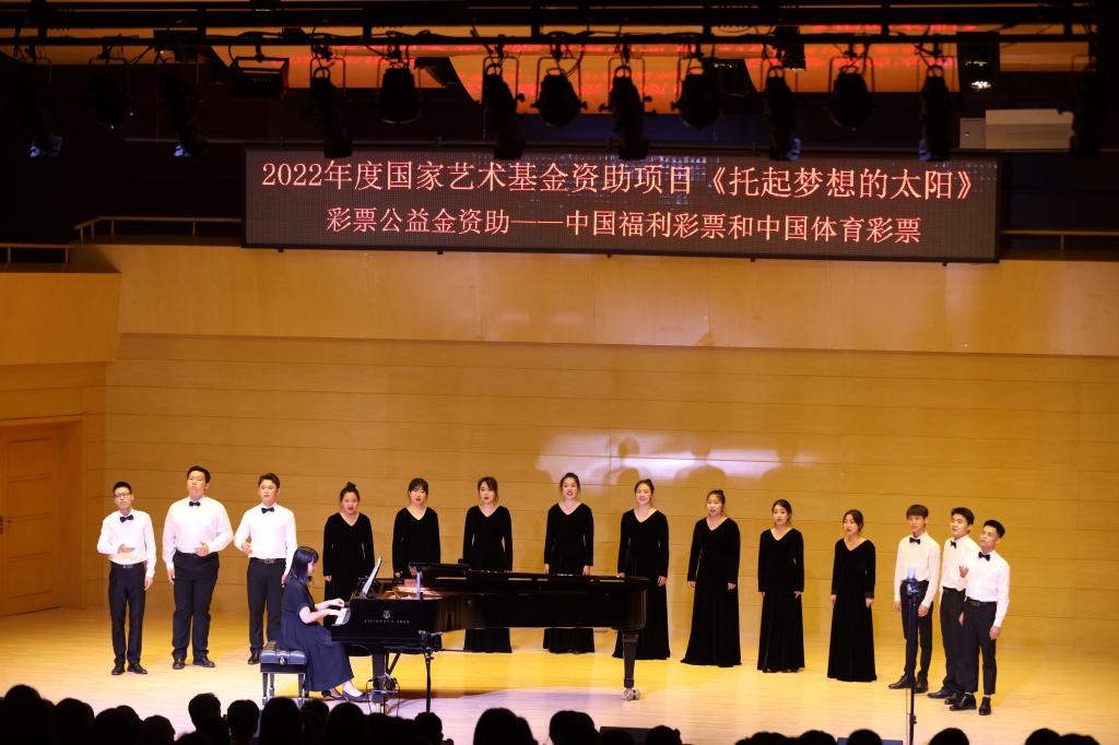 当晚,bat365官网音乐学院联合西安音乐学院作曲系举办2022年度国家基金资助《托起梦想的太阳》彩票公益金资助——中国福利彩票和中国体育彩票音乐会。西安音乐学院党委副书记李宝杰、王刚,纪委副书记全勇,bat365官网校长张守华,副校长卢爱刚、曹强等出席音乐会现场观看。