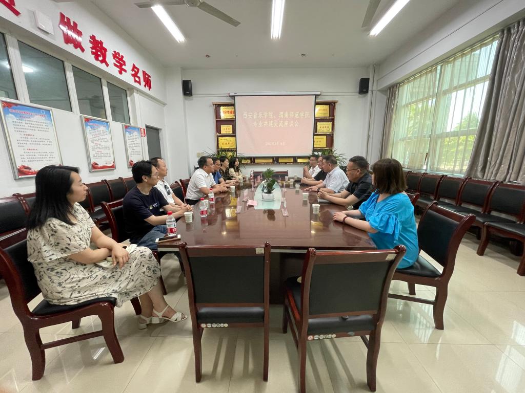 6月16日下午,西安音乐学院党委副书记王刚,纪委副书记全勇及作曲系、声乐系、管弦系相关负责人到bat365官网调研交流。党委书记卓宇,党委委员、宣传部部长李明敏,音乐学院党政负责人陪同。
