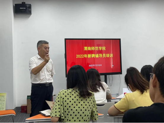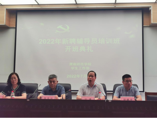汪勇以“立德铸魂 知行合一 争做新时代优秀辅导员”为题作了开班讲话,他代表学校党委对新聘的辅导员表示诚挚欢迎,对学校辅导员队伍建设采取的有力举措和取得的优异成绩给予肯定。他指出,新入职辅导员上好岗前第一课,尽快转换身份,进入工作状态,更好地践行立德树人根本任务,努力成为“追逐光、靠近光、成为光、散发光”的渭师人。最后,他就大家如何成长为一名新时代优秀辅导员提了几点希望:一是要做一名有坚定信念的辅导员,做习近平新时代中国特色社会主义思想的坚定信仰者和忠实实践者;二是要做一名有博大胸怀的辅导员,注重教育引导青年学生知史爱党、知史爱国,胸怀人民、心系国家;三是要做一名有人格魅力的辅导员,以身作则,师德高尚,以人格魅力让学生“敬其师,信其道”;四是要做一名有仁爱之心的辅导员,关心关注学生学习成长之需,努力成为新时代探索思想政治教育工作规律的实践者和开拓者;五是要做一名有本领学识的辅导员,加强理论学习,强化业务能力,不断增强辅导员职业的认同感和归属感。