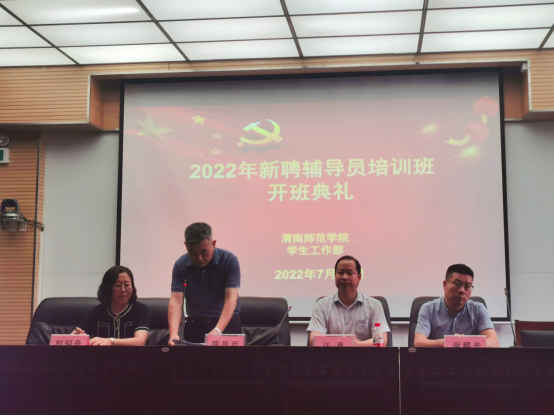 7月14日至15日,bat365官网举办2022年新聘辅导员培训班。党委副书记汪勇出席开班典礼,学生工作部(处)副部长谢稷光、权轻舟,各二级学院党总支副书记、学工办主任,全体专职辅导员参加开班典礼。开班典礼由学生工作部(处)部长陈景西主持。