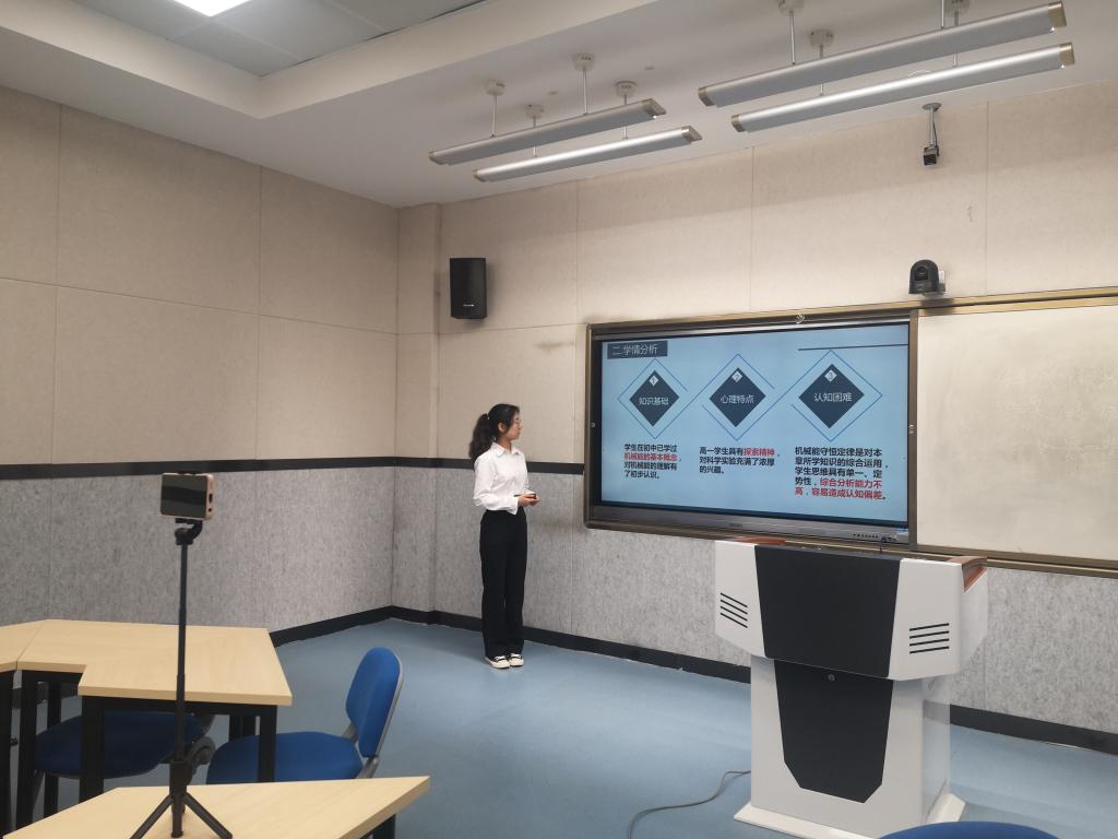 近年来,物理与电气工程学院不断加强师范生教学技能训练,逐步形成了较为完善的师范生教学技能导师培养体系,积极组织学生参与各级各类师范生教学技能比赛,以赛促教,让学生从走上讲台、站住讲台到站稳讲台。今年,学院5月份启动活动并动员宣传,6月份开展面试与高标准参赛选手选拔,暑假期间,组织参赛学生进行了为期20天的封闭式集中强化训练与系统全面的培训指导。参赛学生苏子彧说:“参加比赛不仅提高了我的教学技能与教学设计能力,更让我体会到为了提高教学效果、突破教学难点进行教具制作的创新与乐趣。比赛让我更加热爱讲台,坚定了做一名好老师的教育热情。”