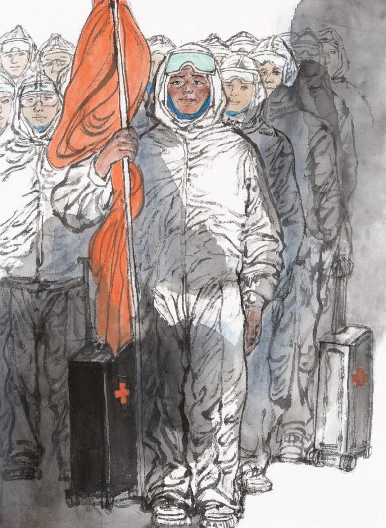 《出征》(纸本水墨六尺)