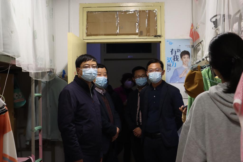 10月12日晚,副校长常青林深入数学与统计学院包联的九号公寓楼检查指导疫情防控等工作,了解各项工作进展。数学与统计学院党总支书记武江波,院长陈斌,副院长赵教练、戴磊及学生辅导员陪同检查。