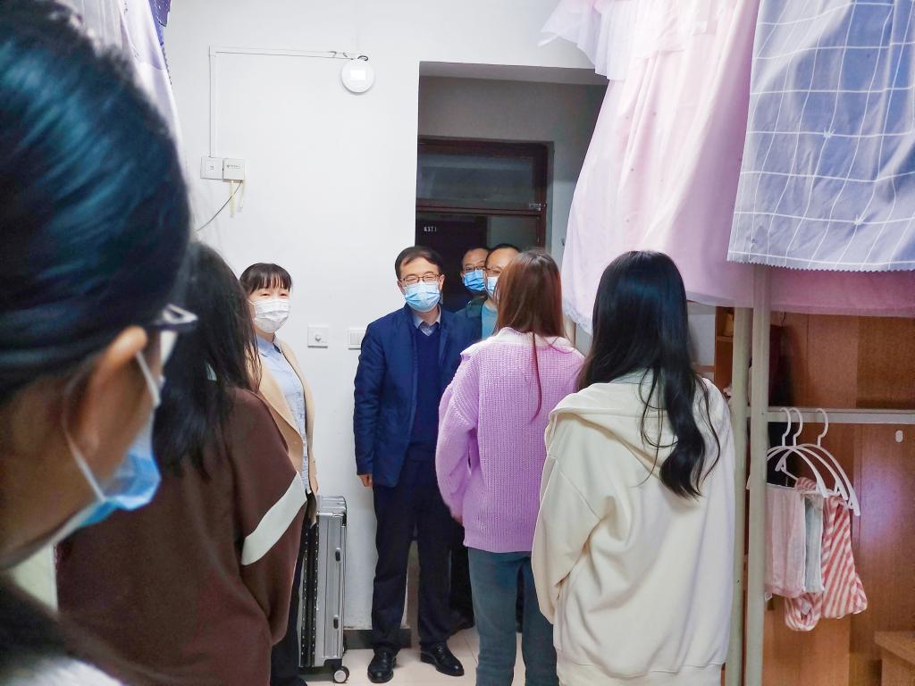10月14日上午,副校长曹强深入人文学院包联12号学生公寓调研指导防疫工作,并深入宿舍看望慰问学生。人文学院党总支书记李三岗,院长赵前明,党总支副书记、副院长张晶陪同调研。