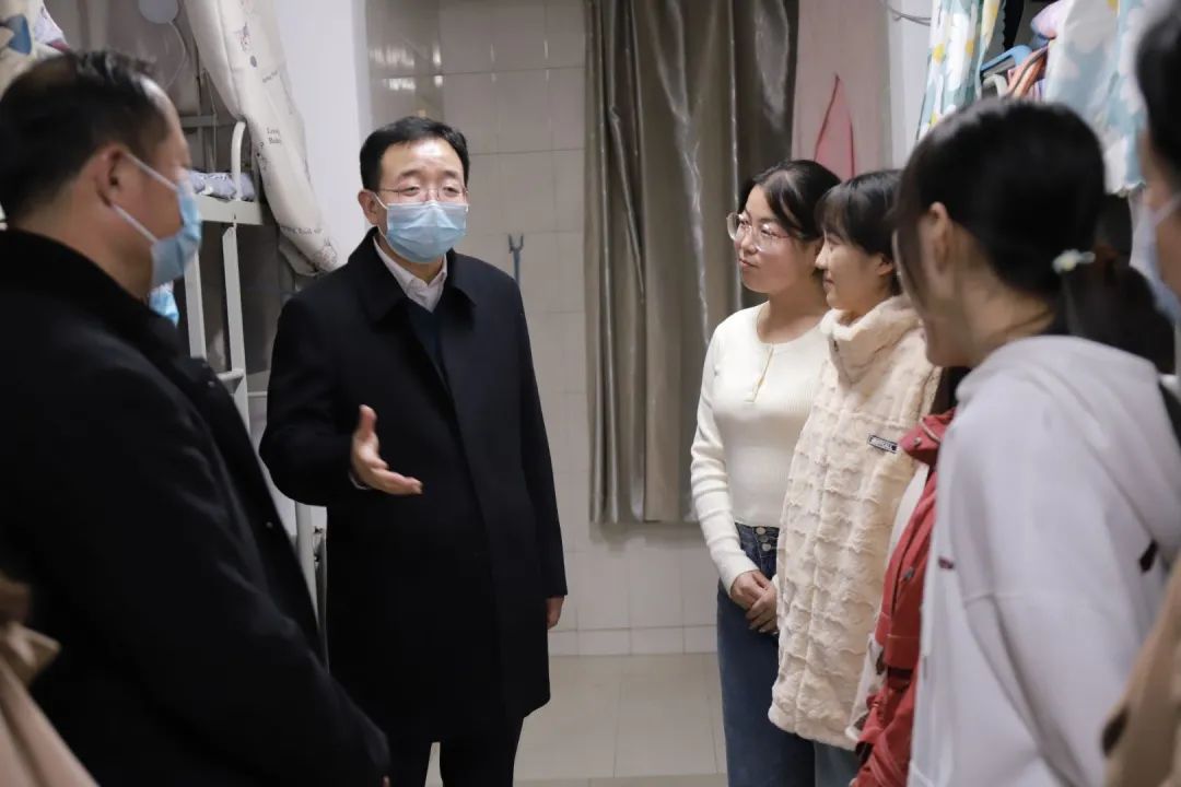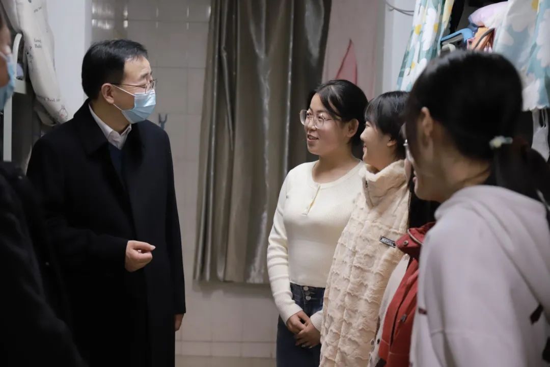 随后,张守华一行来到包联的188宿舍,仔细询问同学们的学习环境、学习与生活状况,了解学生线上学习情况,宿舍同学相处情况。"家是哪的啊?”“高中毕业于哪个学校啊”“习近平总书记给优师计划师范生的回信看了吗?"“学习生活中还有没有什么困难?”一句句暖心的话语让同学们深切感受到校长一行的体贴关怀,纷纷敞开心扉畅所欲言。