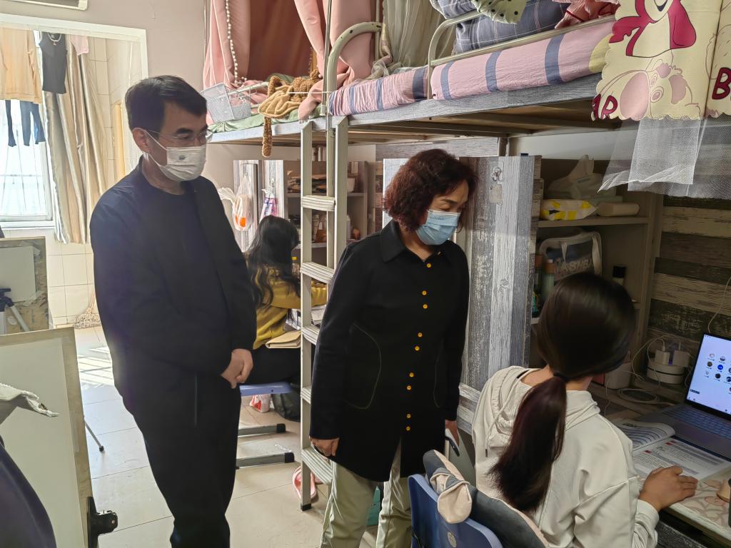 巡查过程中,王菊霞细致了解学生在宿舍学习和生活情况,对学生的在线学习提出明确要求:一是要提前进入课堂,调试好设备,准备好学习用具;二是要积极参与在线学习与课堂互动,做好听课笔记;三是要认真做好课后复习和总结,可以利用思维导图对所学内容加以总结,并对思维导图不断完善和补充,提升学习效果;三是要增强自我约束力,注意宿舍卫生,保障线上教学期间的身心健康。