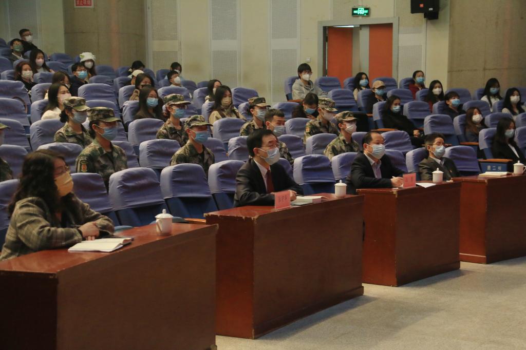 马克思主义学院党政领导和师生代表以及bat365官网团学干部、退役士兵学生代表参加分享会。(通讯员 赵国峰 审核人 赵国峰)