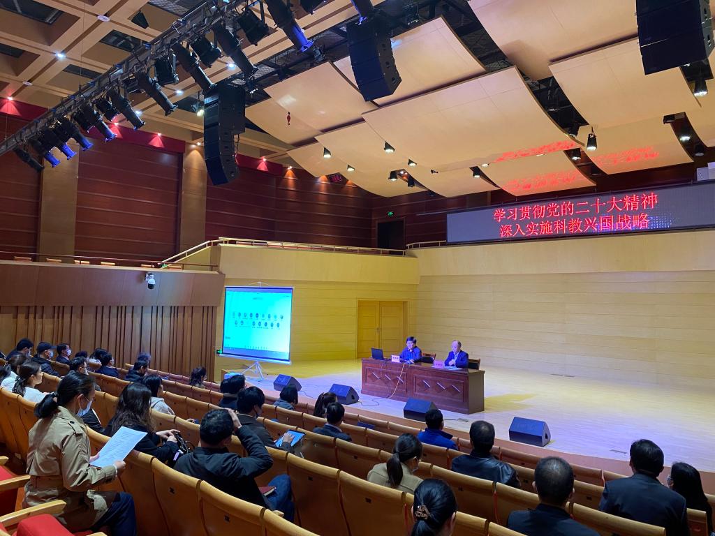 最后,西安交通大学张磊教授作了题为《学习贯彻党的二十大精神深入实施科教兴国战略》的专题报告。张磊教授从党的二十大报告内容解读入手,阐述了新时代十年成就、新征程面临的机遇和挑战以及科教兴国战略,最后向大家介绍了个人从事科研工作的体会和建议。