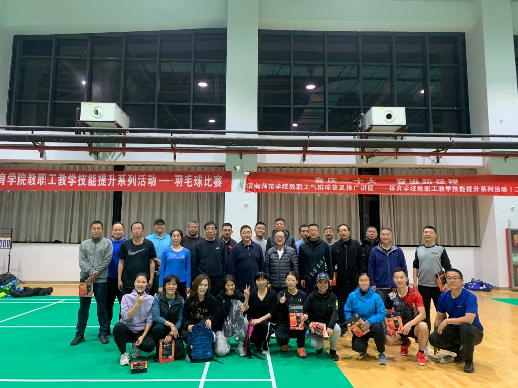 赛后,卓宇、韩小卫、袁亮分别为冠、亚、季军颁奖。此次活动掀起了全体教职工体育教学研究的热潮,提高了大家专项技术水平,展示了体育学院教职工团结进取、勇于拼搏的精神风貌,推进了学校体育工作的进一步发展。