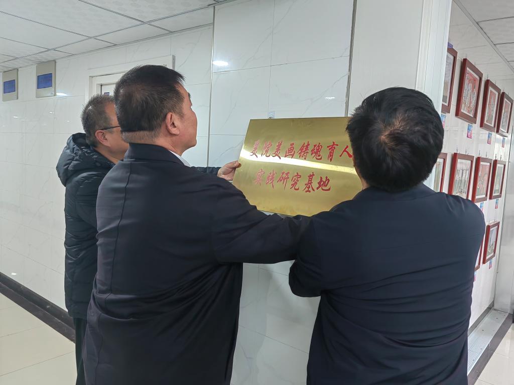 在富平校区“美院美画”铸魂育人实践研究基地,卓宇为基地挂牌,并参观了基地党史汇作品、习近平总书记寄语书法、文创产品等展区,还观看了“美院美画”之红色作品讲解视频。