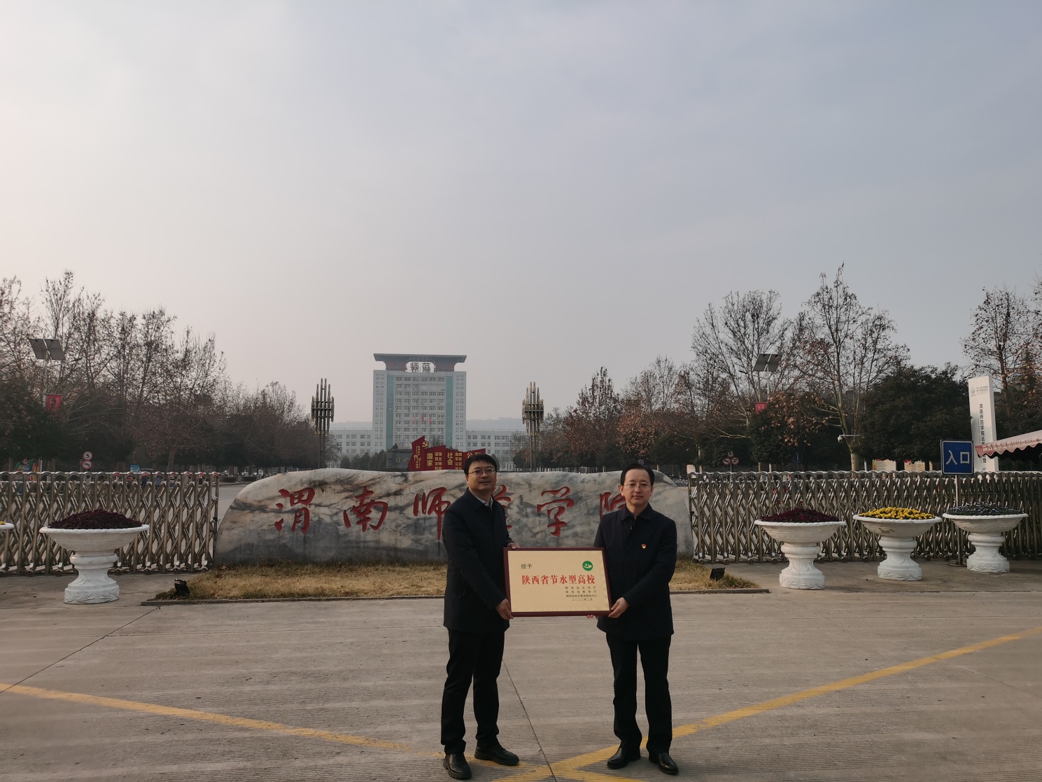 bat365官网被陕西省水利厅、省教育厅、省机关事务服务中心联合发文授予“陕西省节水型高校”。2月24日,授牌仪式在朝阳校区举行,副校长常青林出席有关活动。