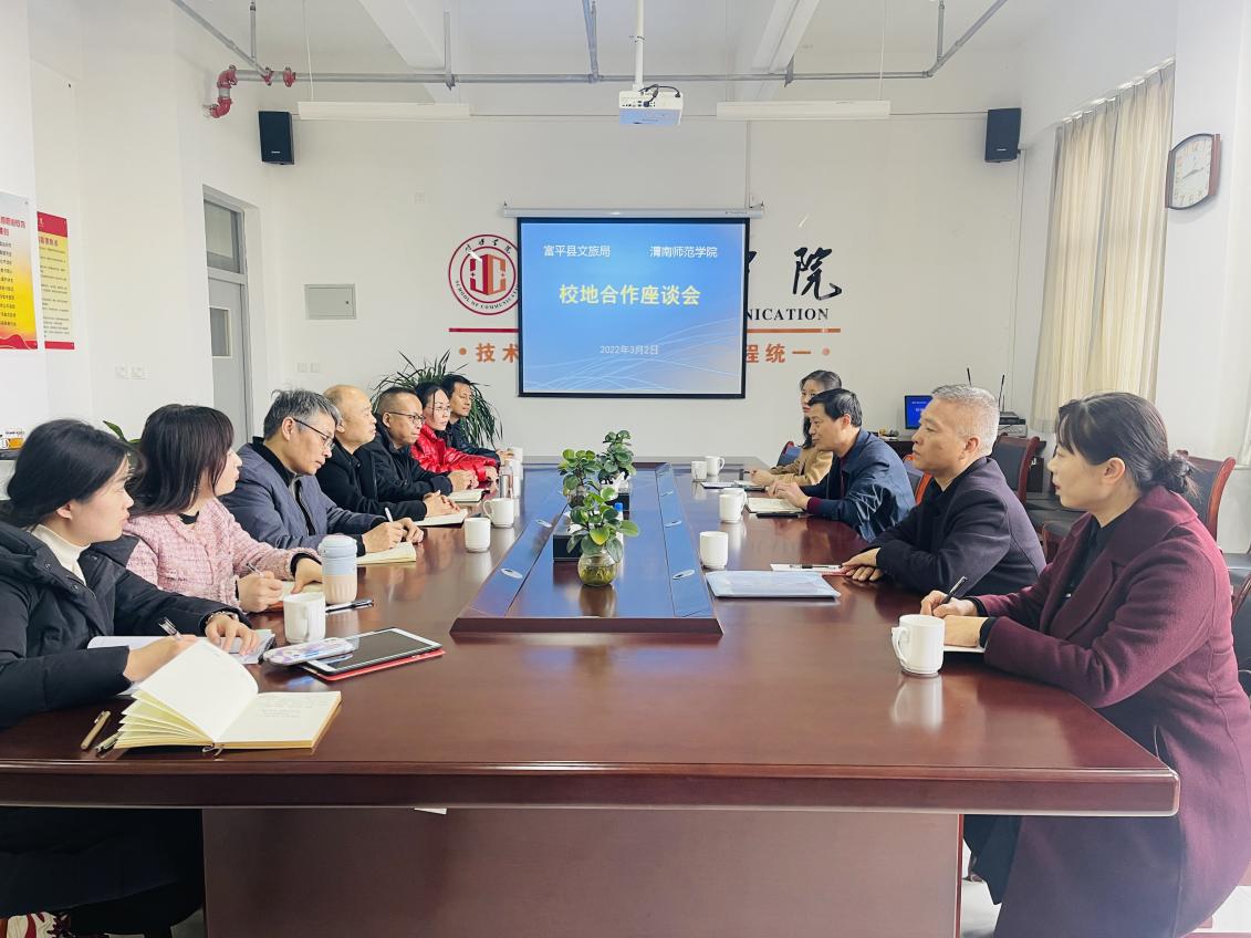 3月2日下午,富平县文旅局局长卢战强一行来bat365官网富平校区洽谈校地合作事宜,副校长卢爱刚主持座谈会并讲话。