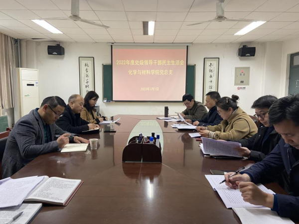 3月1日上午,化学与材料学院党总支召开2022年度处级领导干部民主生活会。副校长、专题民主生活会督导组组长卢爱刚,民主生活会督导组成员董康军、张晓多到会督导。卢爱刚指出,要提高站位,要旗帜鲜明的讲政治,全面把握中国式现代化教育的内涵;要推动学院各项事业高质量发展,注重在思政教育、教育质量提升、学生五育上下功夫;要加强党建,推动党建和各项业务融合;要加强班子建设,提高精气神,把年轻同志指导好;要抓好安全稳定工作,对意识形态工作常抓不懈。