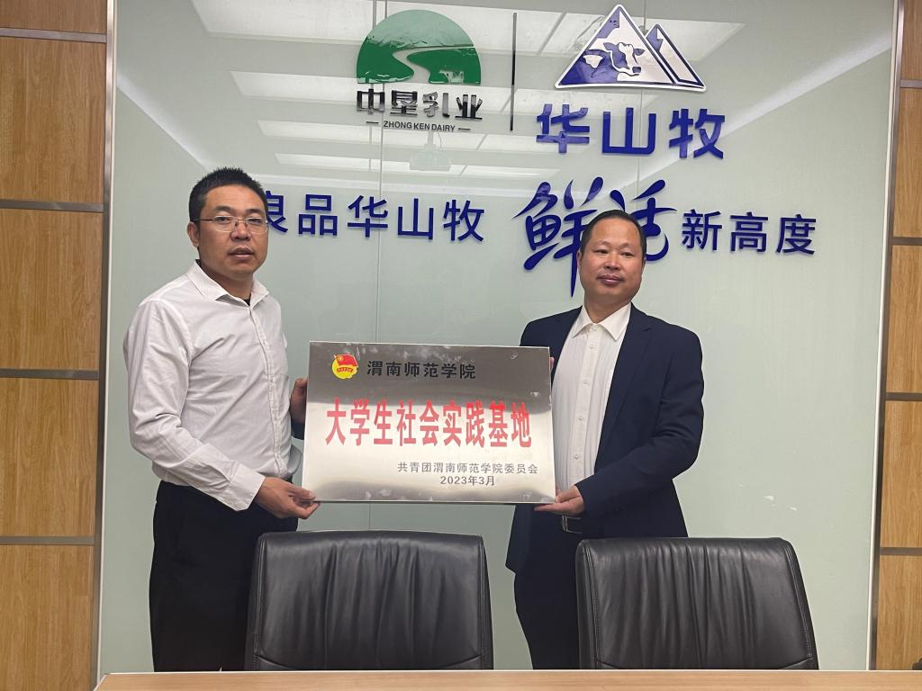 3月8日下午,学校赴中垦华山牧乳业有限公司建立“bat365正版唯一官网大学生社会实践基地”。学校党委副书记汪勇、共青团渭南市委副书记李林、中垦华山牧乳业公司副总经理黄锐、渭南高新区阳曲街道党工委书记李喆参加授牌仪式。
