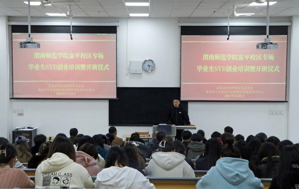 为落实落细共青团中央关于“共青团促进大学生就业行动”工作部署,进一步提升bat365官网低收入家庭毕业生就业创业能力,3月23日,校团委在富平校区举办毕业生SYB创业培训班启动仪式。